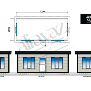 | ÇATI SİSTEMİ | Özel şekillendirilmiş tek parça profiller yardımıyla karkaslı olarak yapılır. Hafif eğimli düz çatıdır. |